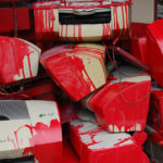 32 chaises (23 blanches, 8 rouges, 1 jaune)