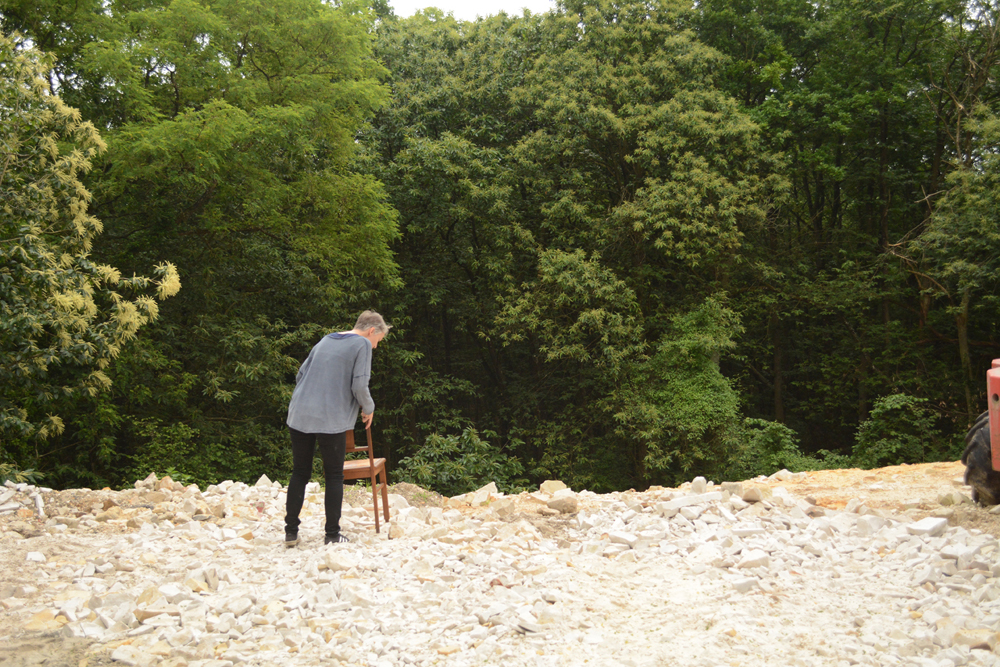La photographie exposée est issue de la série Les chaises sont des fenêtres comme les autres, et a été réalisée dans la carrière de grès de Moigny-sur-Ecole, lors de ma résidence en Essonne.