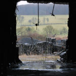 Les fissures, le temps qui passe et la mémoire, les questions en suspend au milieu des gravats, de la poussière et des amoncellements, la lumière à travers le carreau cassé.