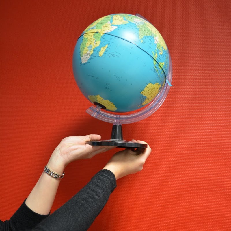 la dame qui a travaillé avec des réfugiés » j’en ai eu plein, de partout hein, alors le globe, c’est quand même lié à mon travail, là, même si je ne suis jamais allée nulle part »