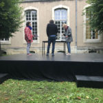 Et puis c’est fou (fou) d’assister à autant de mises en voix, mises en espace, une vingtaine en 5 jours, avec l’énergie et le talent incroyables des comédiennes et des comédiens, des musiciens et techniciens, sur la scène, dans le gymnase, dans le jardin du cloitre ou sous les tilleuls et les marronniers, et dans le jardin extérieur, le soir, sur le parquet de bal : )