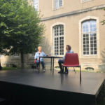 Retour sur une presque semaine de théâtre et de lectures, de rencontres et d’études, avec le dernier jour la lecture performée de ma pièce Presqu’îl-e, dirigée par Véronique Bellegarde, avec Anne Cantineau et David Gouhier, sur une musique de Philitti / Philippe Thibault. La mousson d’été 2023, à Pont-à-Mousson, dans la belle et grande abbaye des Prémontrés et ses jardins, au bord de la Moselle.