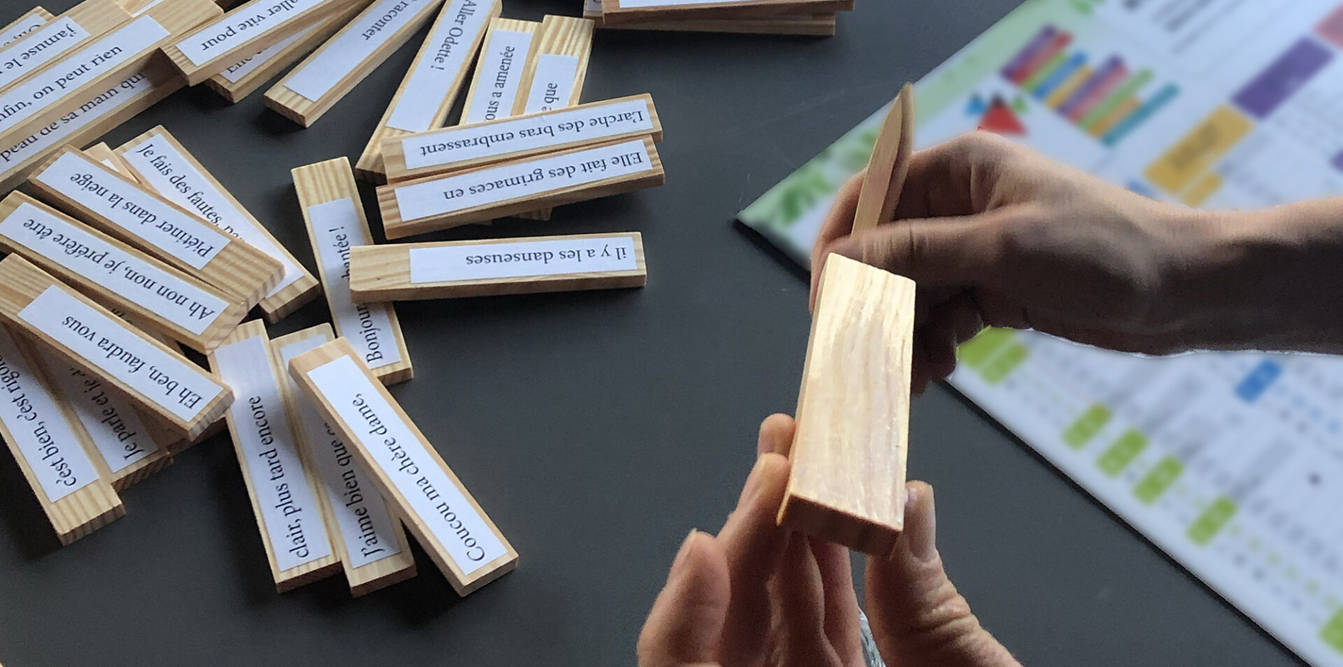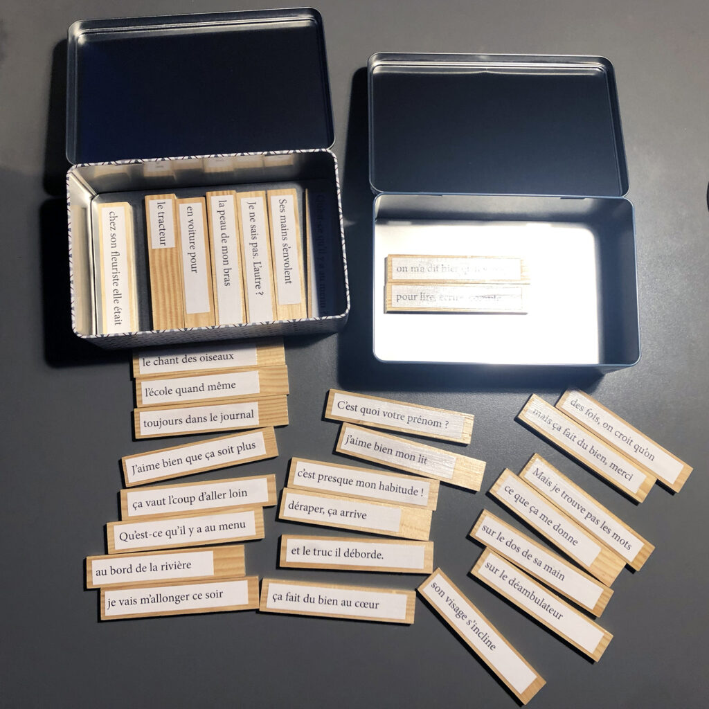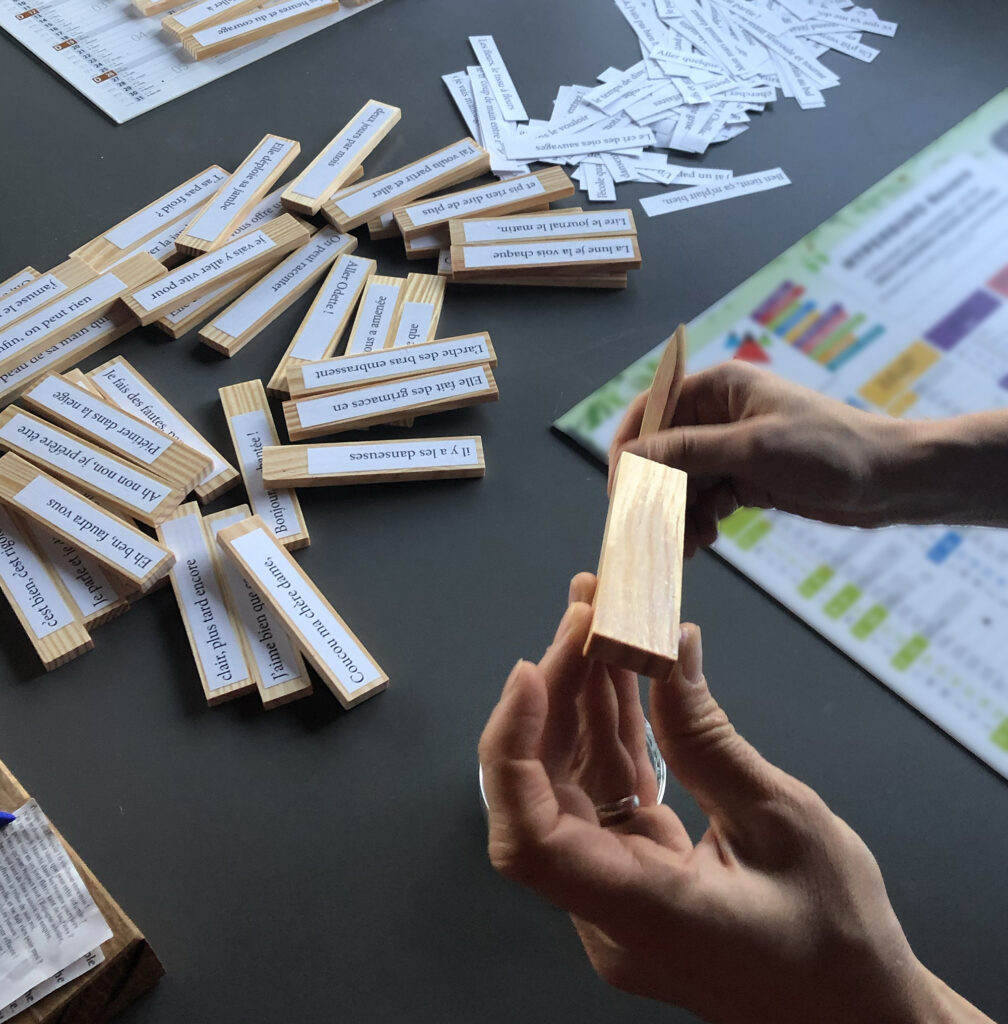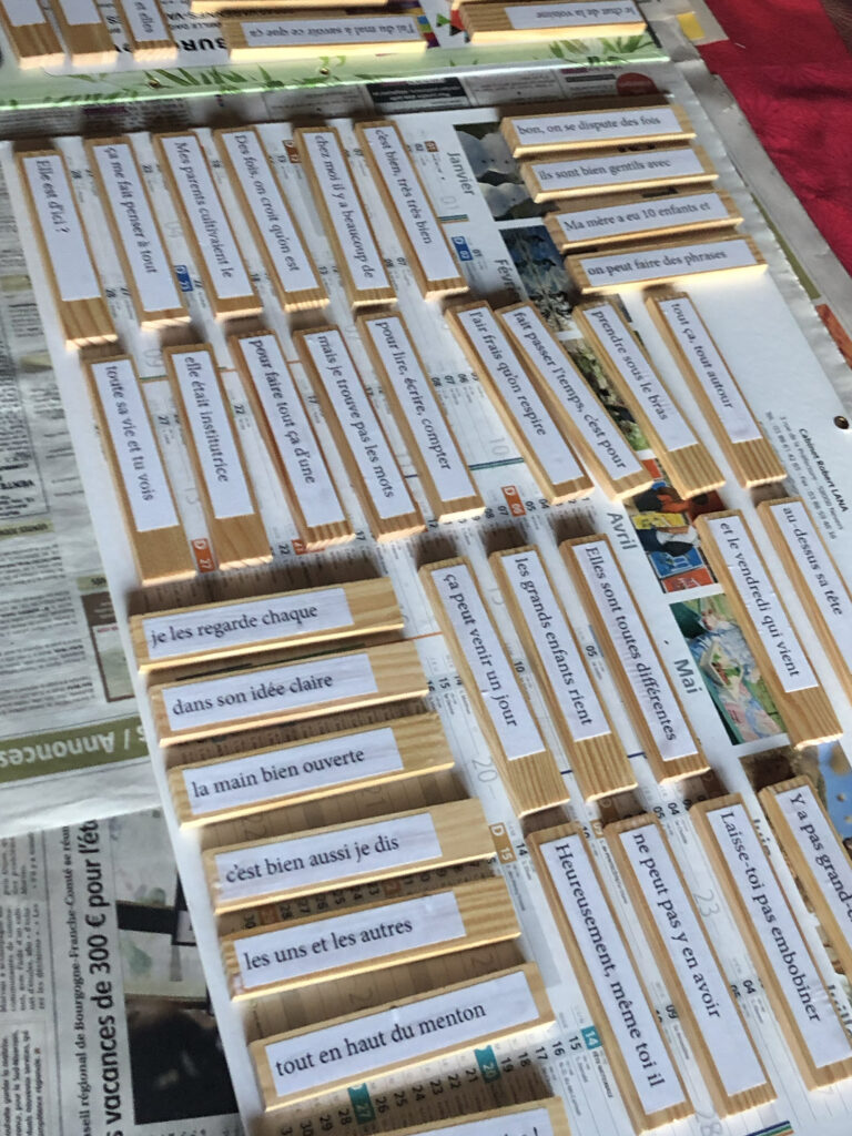 Puis, s’occuper autrement les mains et le cerveau, en réalisant les phrases à manipuler.