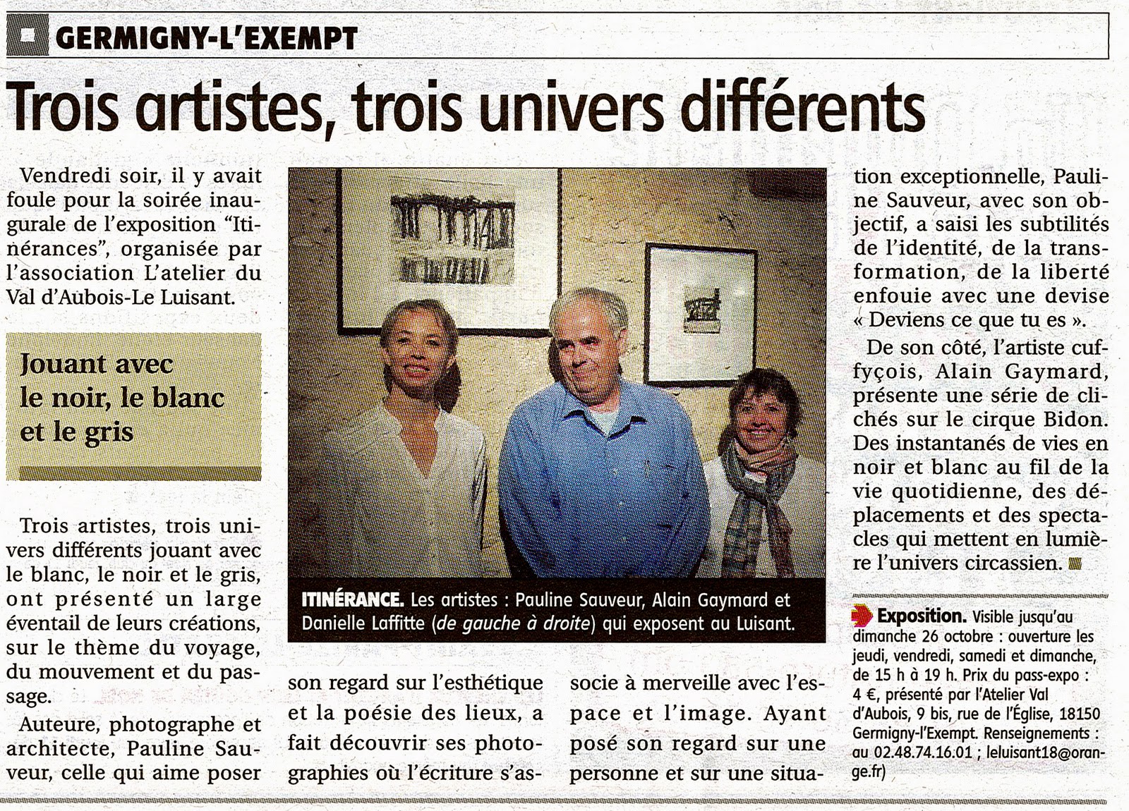 du 3 au 26 octobre 2014 – Le Luisant à Germigny-l’Exempt (18)